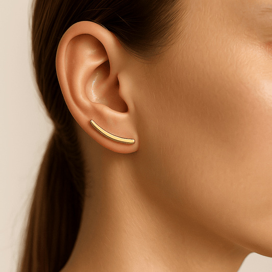 La boucle d'oreille grimpante incarne cette parfaite alliance entre modernité et élégance intemporelle. Elle suit la courbe naturelle de l’oreille comme un fil de lumière, révélant toute la délicatesse du visage. C’est le bijou de celles qui osent, qui aiment l’équilibre subtil entre douceur et caractère affirmé.
